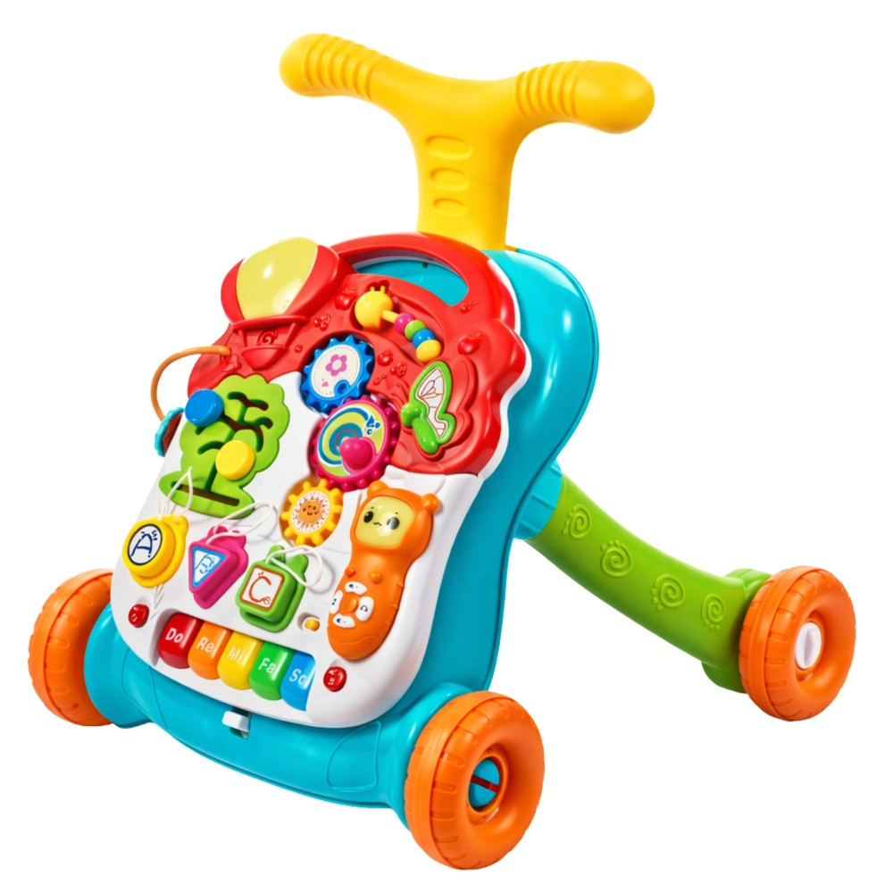 Premergătorul multifuncțional 5‑în‑1 îi ajută pe copii, încă de la primii pași, să își dezvolte motricitatea, simțurile și cunoașterea. Oferă un panou interactiv cu lumini și sunete, pian, telefon, sortator de forme și poate fi transformat cu ușurință într-o măsuță de joacă. Construcția stabilă și roțile din cauciuc, blânde cu podeaua, asigură o utilizare sigură și lină.