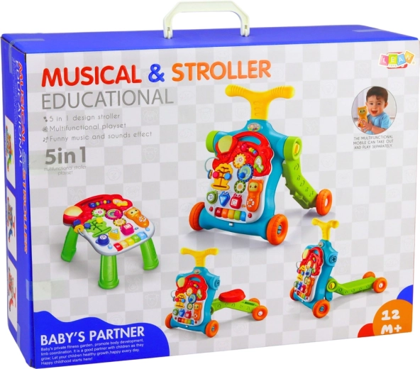 Descoperă soluția inteligentă pentru primii pași și joaca de zi cu zi: acest premergător multifuncțional 5‑în‑1 servește ca premergător de împins, mașinuță de împins, trotinetă, măsuță educațională și panou interactiv detașabil. Datorită construcției stabile, blocării roților și echipării bogate (pian, butoane, rotițe dințate, forme, mărgele), susține motricitatea fină, coordonarea mână‑ochi, percepția formelor și a sunetelor și dezvoltarea senzorială. Designul practic crește odată cu copilul și asigură ore întregi de distracție creativă acasă și în călătorii.
