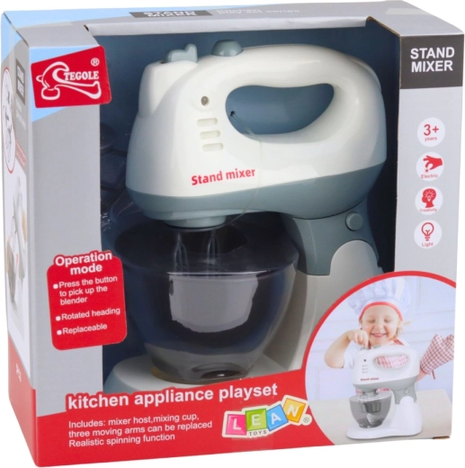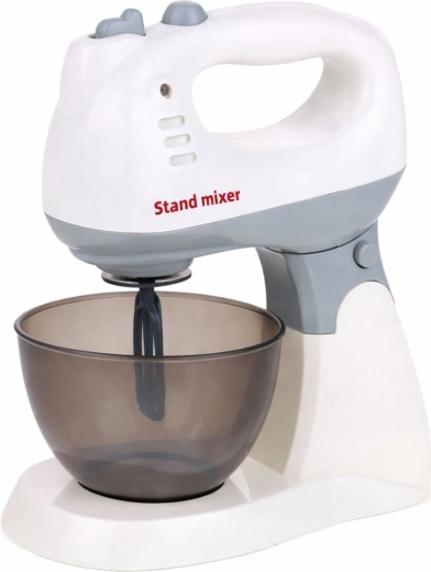 Acest mixer de bucătărie pentru copii arată ca un aparat real: are suport stabil, bol transparent și un cap care se poate detașa ușor pentru a fi folosit ca mixer de mână. Datorită capetelor rotative și indicatorului luminos, jocul este și mai realist, iar copiii pot imita în siguranță adulții în bucătărie.