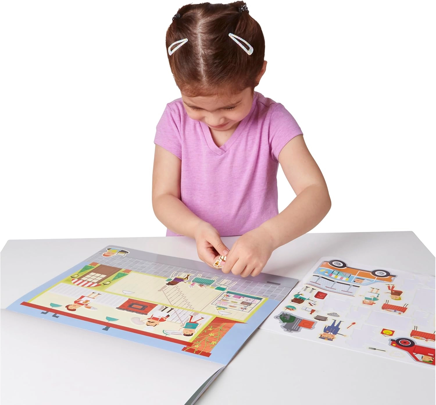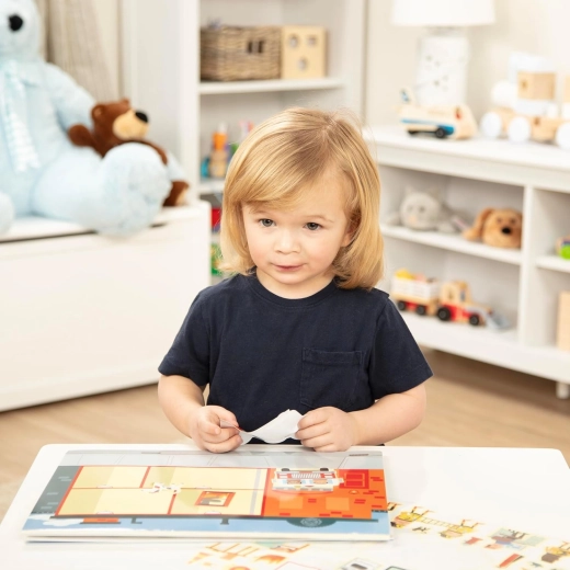 O alegere excelentă pentru joacă acasă sau în călătorii: nu este nevoie de lipici sau accesorii suplimentare. Copiii își exersează povestirea, sortarea obiectelor și planificarea scenelor, bucurându-se de ilustrațiile colorate.