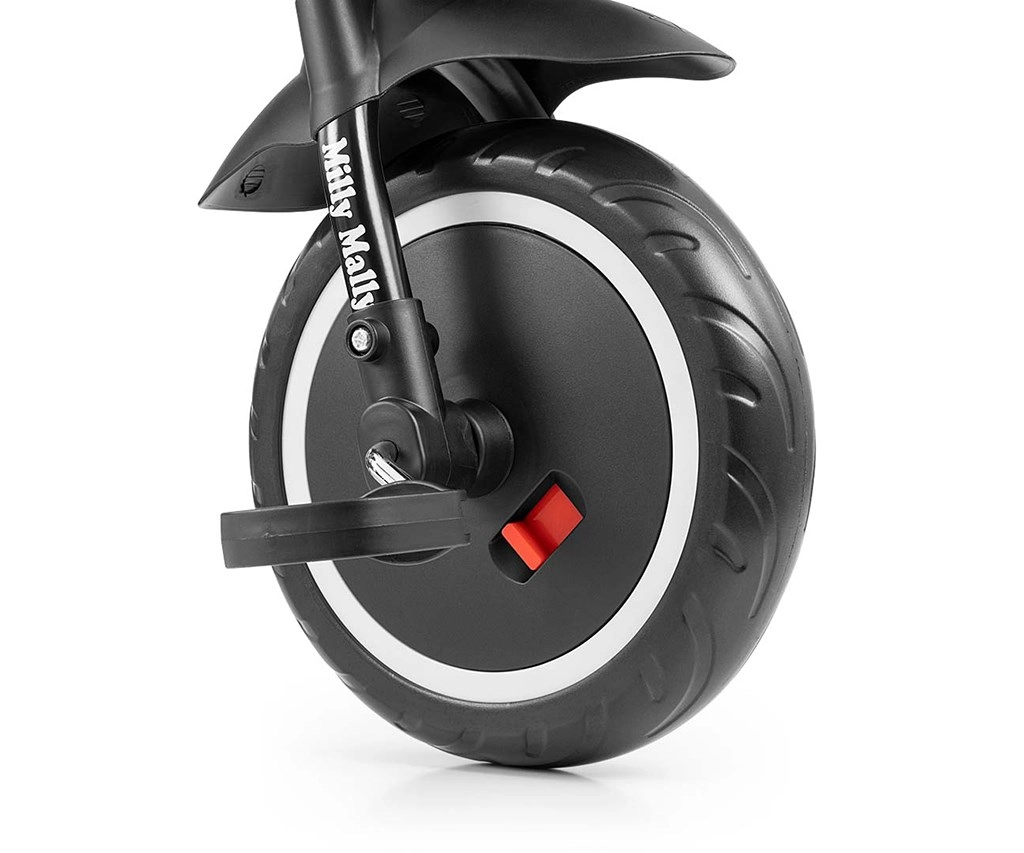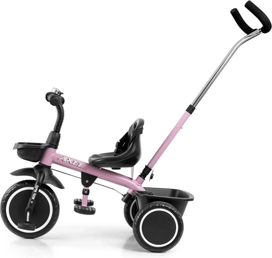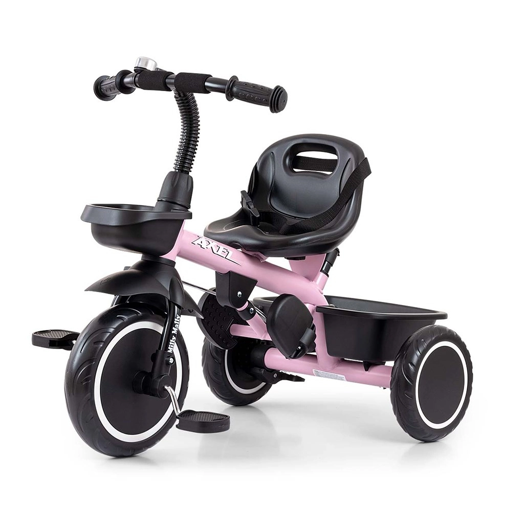 Tricicleta MILLY MALLY Axel este alegerea ideală pentru primele plimbări ale copilului. Combină o structură din oțel solidă cu piese din plastic de calitate, șa ergonomică cu ajustarea distanței față de ghidon și roți late din EVA pentru o deplasare lină și silențioasă.