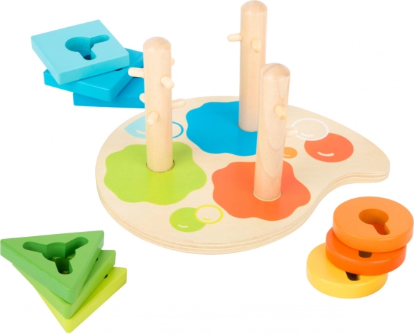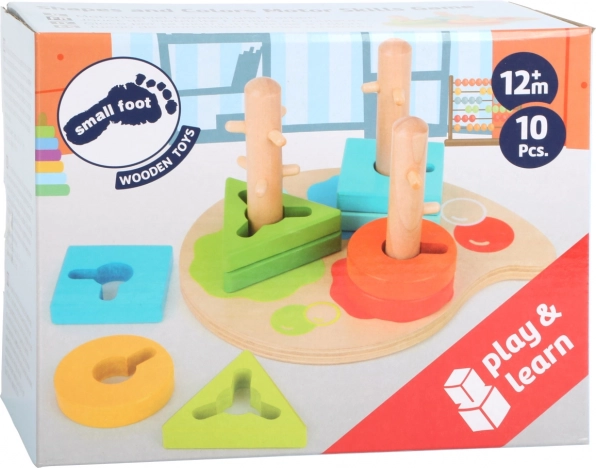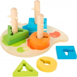 Această jucărie motrică din lemn fascinantă este ideală pentru cei mai mici artiști, care se pot distra sortând forme geometrice precum triunghi, dreptunghi și cerc pe locul corect, în funcție de culoare. Jucăria este concepută astfel încât copiii să își poată exersa abilitățile în timp ce învață despre culori și forme.