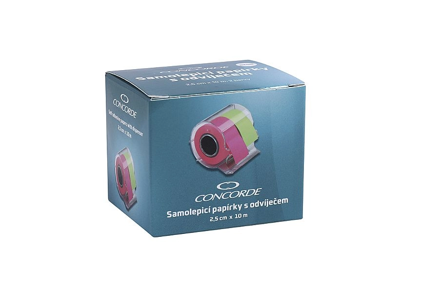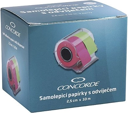Bilețele autoadezive practice pe rolă cu dispenser în două culori neon (roz și verde) pentru notițe rapide și marcaje. Fiecare rolă are lățimea de 2,5 cm și lungimea de 10 m, iar partea din spate este complet adezivă pe toată lățimea. Datorită lamei integrate poți rupe ușor exact cât de lung ai nevoie. Aderă excelent pe hârtie și suprafețe netede.