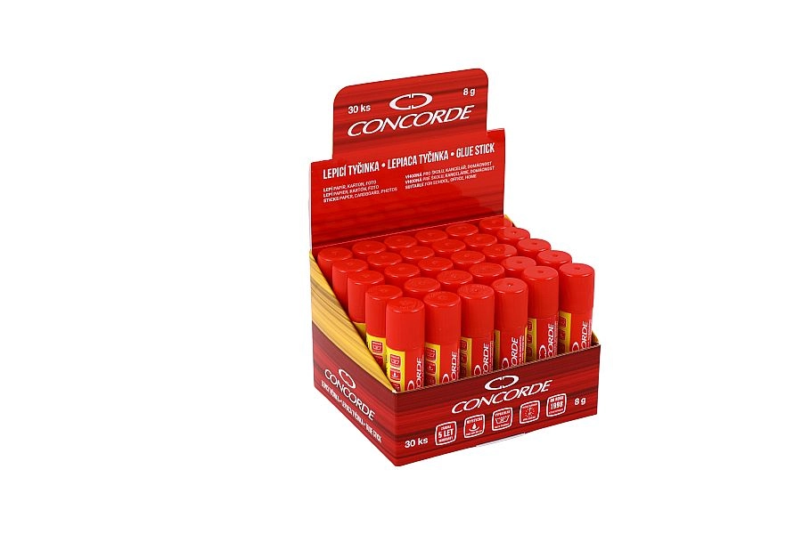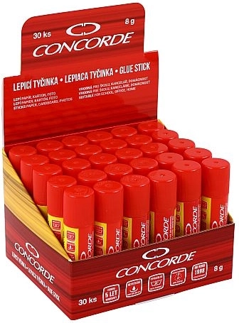 Lipici solid CONCORDE de 8 g, practic și fiabil, pentru uz zilnic la birou, la școală și acasă. Lipire rapidă și curată a hârtiei, cartonului, materialelor textile și fotografiilor, nu se usucă, este sigur pentru copii și ușor de spălat. Calitate verificată – testat, lipește până la 5 ani.