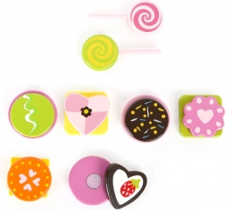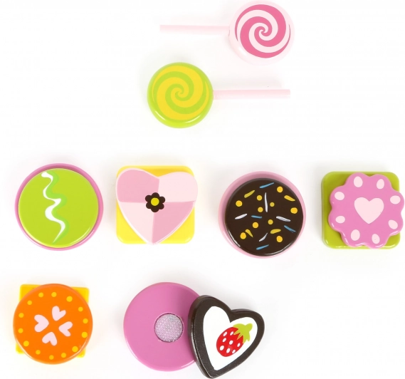 Descoperă farmecul jocului dulce cu setul variat de bunătăți din lemn SMALL FOOT. Acadelele, biscuiții și pralinele sunt realizate din lemn 100% certificat FSC, iar datorită benzilor robuste cu arici, copiii le pot separa și reuni iar și iar. Accesoriile realiste transformă orice bucătărie de jucărie într-o cofetărie creativă.
