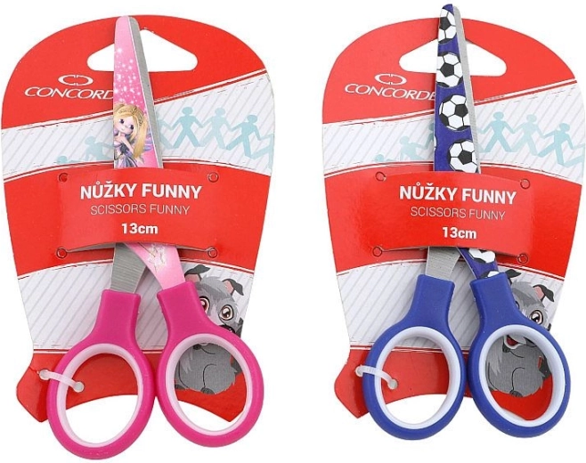 Căutați o foarfecă pentru copii, pentru școală sau pentru creații acasă? CONCORDE Funny 13 cm îmbină siguranța, confortul și un design amuzant. Copiii vor aprecia motivele cu minge sau prințese, iar părinții vor avea liniște datorită vârfurilor rotunjite și lamelor metalice de calitate.
