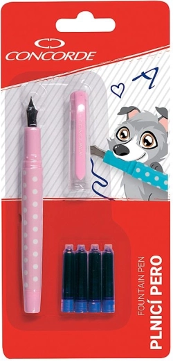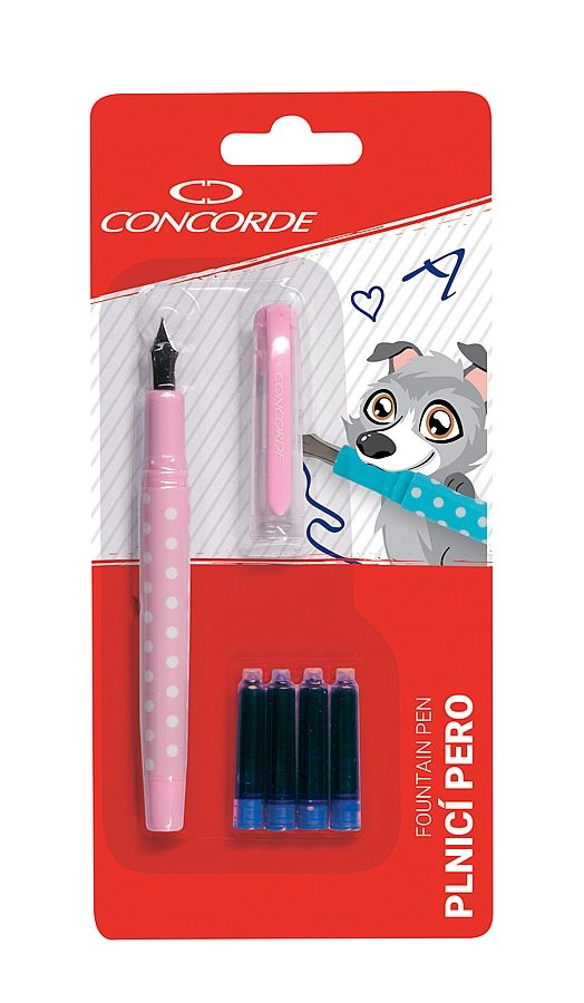Stiloul elegant CONCORDE Punto în nuanțe pastel oferă scriere lină, priză confortabilă și peniță fiabilă din oțel inoxidabil. În pachet găsiți 4 cartușe de cerneală, astfel încât puteți scrie imediat după deschidere. Livrat în asortiment albastru și roz pe blister – ideal pentru școală, birou și pentru scriere creativă.