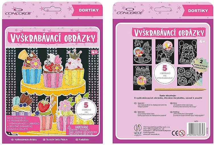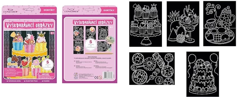 Imaginile de zgâriat Brioșe CONCORDE sunt o alegere excelentă pentru momentele de creație acasă sau în călătorii. Fiecare coală ascunde un strat colorat, pe care îl dezvălui ușor prin zgâriere delicată. Poți descoperi întreaga suprafață, poți evidenția doar detalii selectate sau îți poți crea modele decorative complet originale.