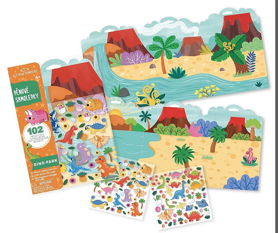 Autocolantele din spumă CONCORDE Dino park sunt o alegere excelentă pentru joaca creativă. Datorită suprafeței speciale, aderă pe suprafețe netede fără a folosi adeziv, nu lasă murdărie și pot fi repoziționate ușor, iar și iar. Copiii pot crea scene preistorice proprii și își dezvoltă imaginația.