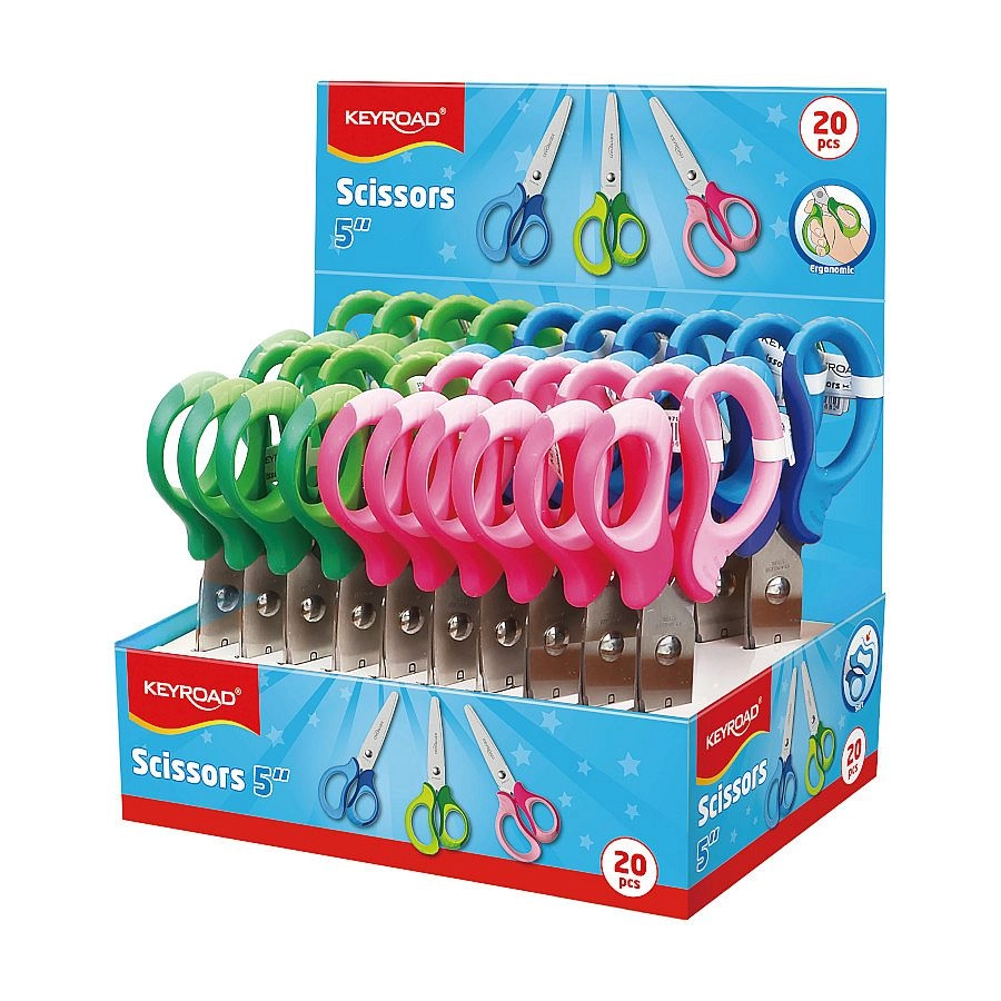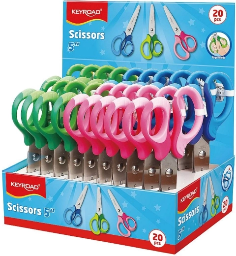 Foarfeca pentru copii KEYROAD Soft, cu lungimea de 12,5 cm, este ideală pentru activități creative acasă și pentru proiecte școlare. Vârful rotunjit crește siguranța în timpul utilizării, iar mânerele ergonomice moi ajută copiii să țină foarfeca sigur și fără oboseală.