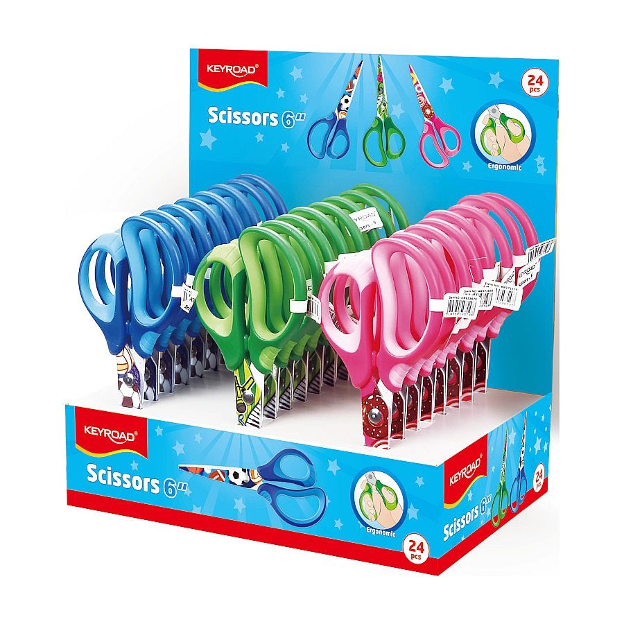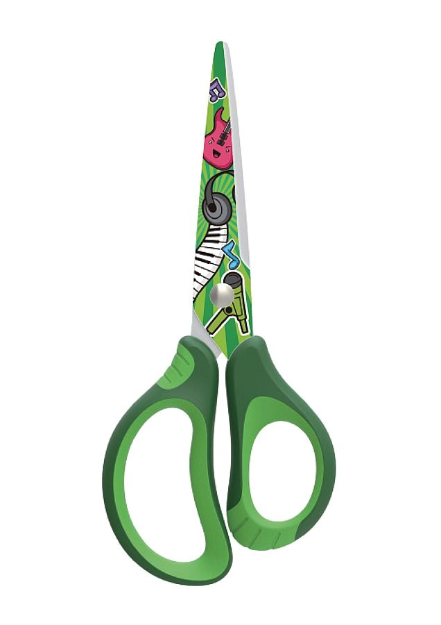 Foarfece școlare practice, cu vârf rotunjit și imprimeu modern, ideale pentru copii și studenți. Oferă mâner ergonomic moale pentru o prindere confortabilă, lame din oțel de calitate pentru tăieturi curate și un design sigur potrivit pentru școală. Livrate într-un mix de 3 culori.