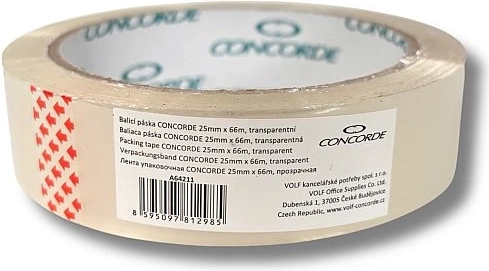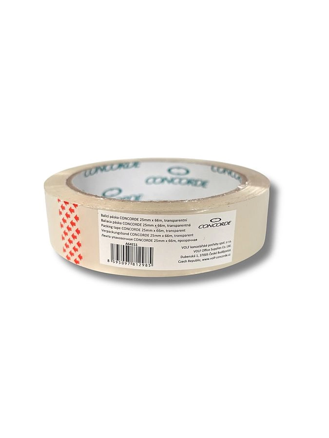 Bandă adezivă de ambalare CONCORDE transparentă, de calitate, cu dimensiunile 25 mm × 66 m, ideală pentru închiderea zilnică a cutiilor și coletelor. Datorită adezivului acrilic pe bază de apă oferă lipire curată și fiabilă, aderență de lungă durată și rezistență la îmbătrânire. Se potrivește perfect pentru depozite și linii de ambalare, iar fiecare rolă are cod EAN pentru o evidență ușoară.