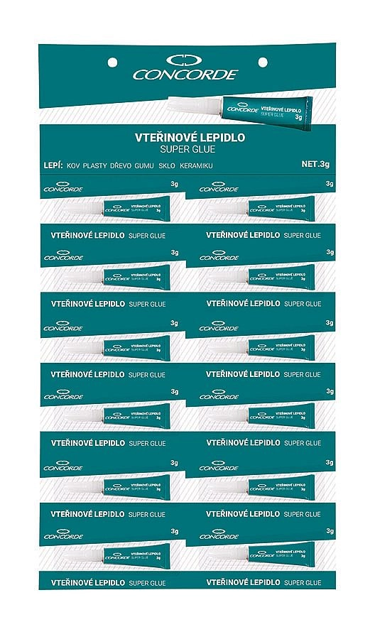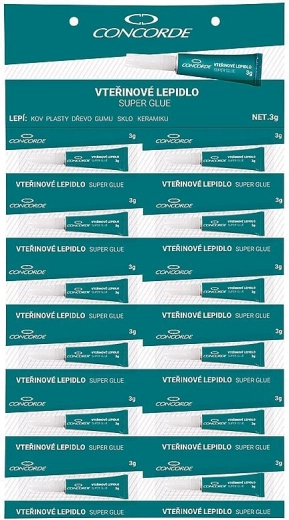 Adeziv universal instant CONCORDE, 3 g, pentru reparații rapide și rezistente în gospodărie și atelier. Potrivit pentru metal, plastice, lemn, cauciuc, sticlă și ceramică. Oferă efect imediat și, după întărire, lasă o îmbinare transparentă cu rezistență de până la 140 kg/cm².
