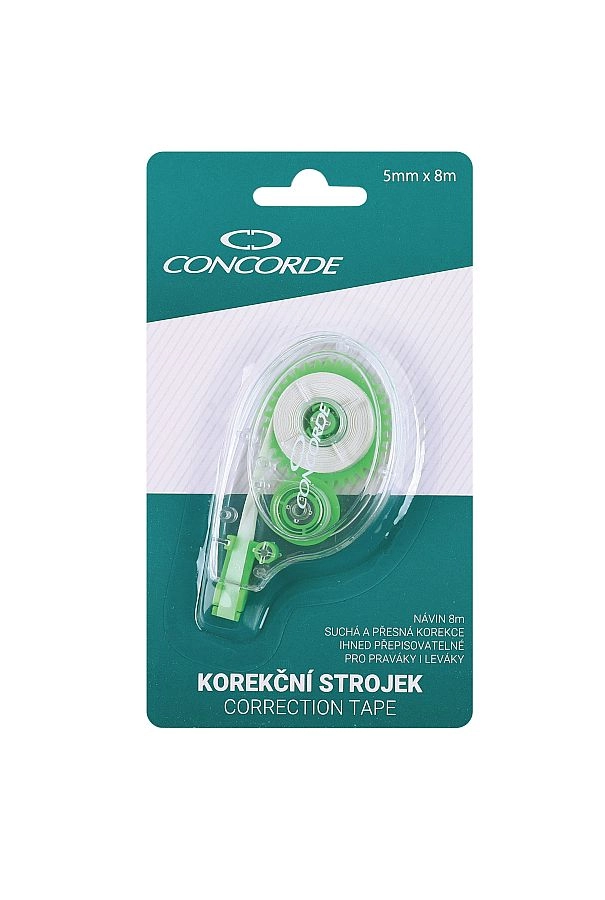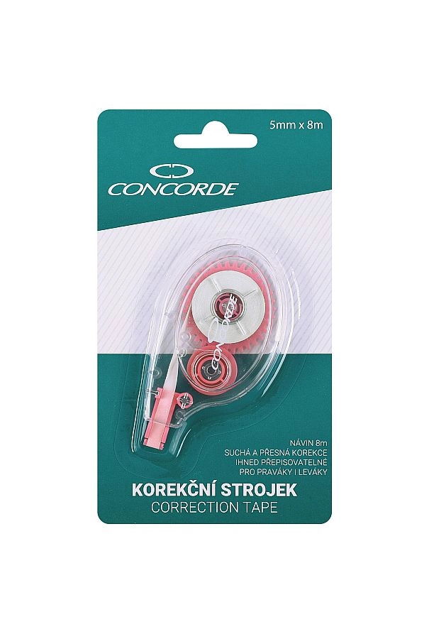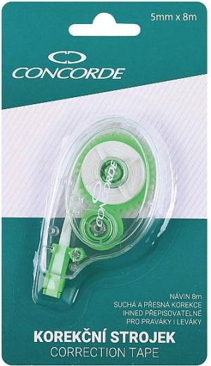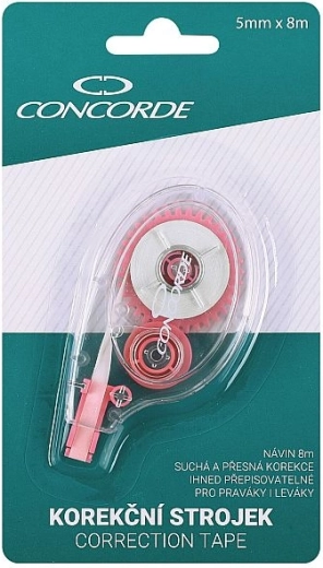 Corector tip mouse de unică folosință, practic, cu lățimea benzii de 5 mm și lungimea de 8 m, pentru corecturi rapide și precise. Datorită formei ergonomice se ține confortabil în mână, banda este imediat reinscriptibilă și nu lasă umbre pe fotocopii.