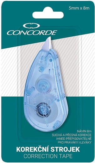 Corectorul CONCORDE Senza este un ajutor de încredere pentru corectări rapide și curate ale textului la birou, la școală sau acasă. Lățimea benzii de 5 mm acoperă precis rândurile de text scris sau tipărit, iar lungimea de 8 m oferă o durată îndelungată de utilizare. Corectarea este uscată și imediat rescriptibilă – fără murdărire și fără așteptare.