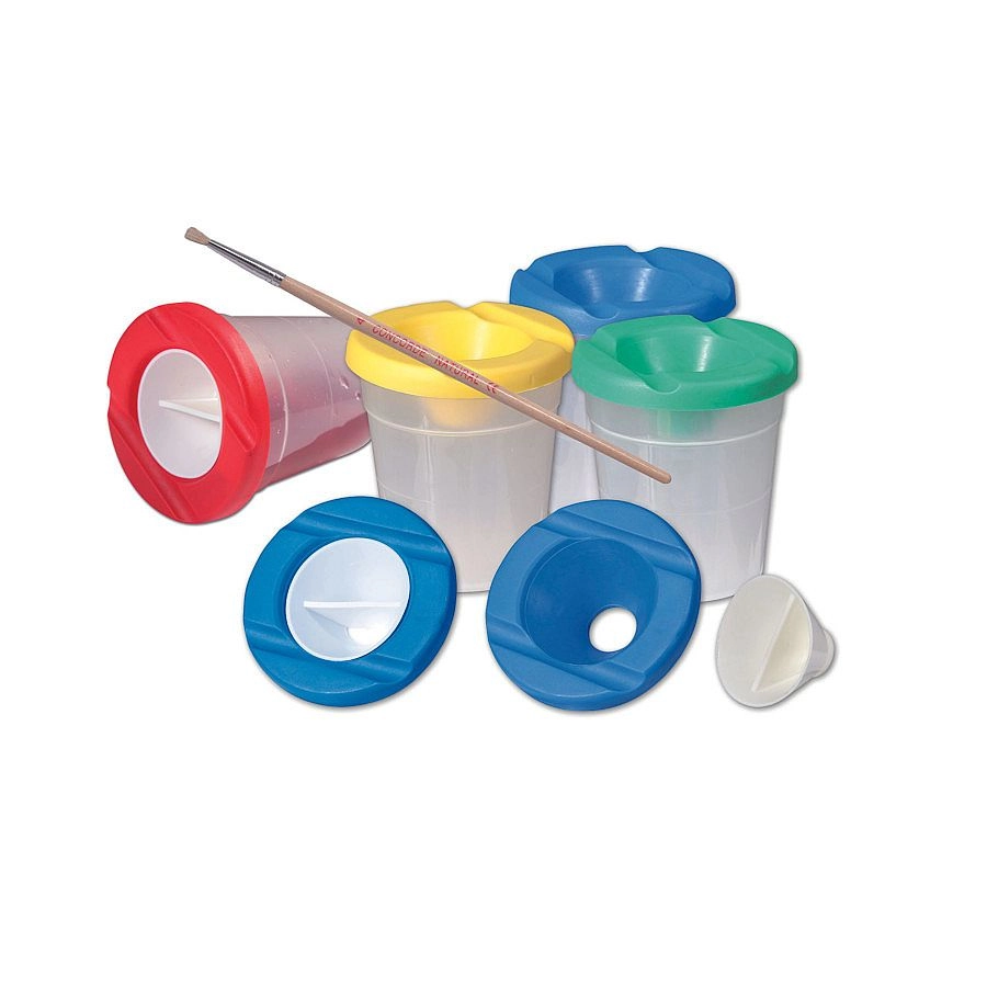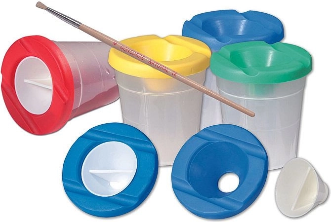 Căutați un pahar sigur și rezistent pentru artiști mici și mari? Paharul pentru apă CONCORDE, cu înălțimea de 9 cm, minimizează murdăria la pictat – atunci când este umplut până la marcaj, apa rămâne în interior chiar și la răsturnare. Două șanțuri practice permit așezarea comodă a pensulelor în timpul lucrului.