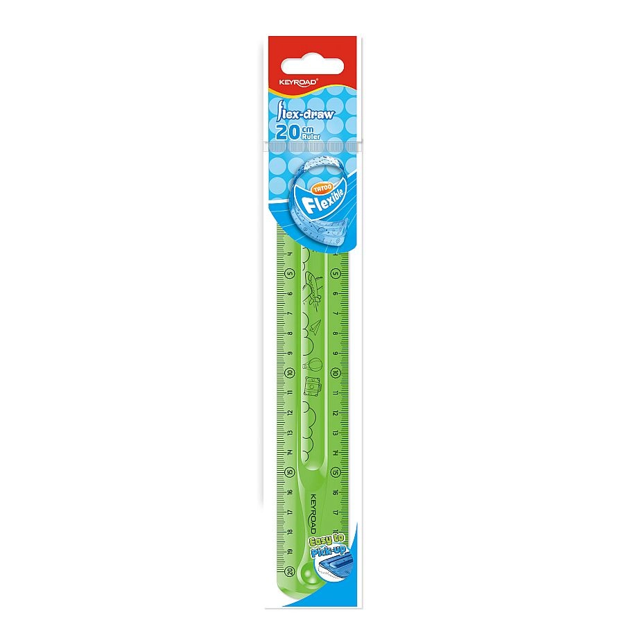Căutați o riglă care să reziste? KEYROAD Flexi este o riglă flexibilă și transparentă cu lungimea de 20 cm, care datorită construcției sale suportă utilizarea zilnică fără a se crăpa. Este fără ftalați, deci sigură pentru copii și adulți.