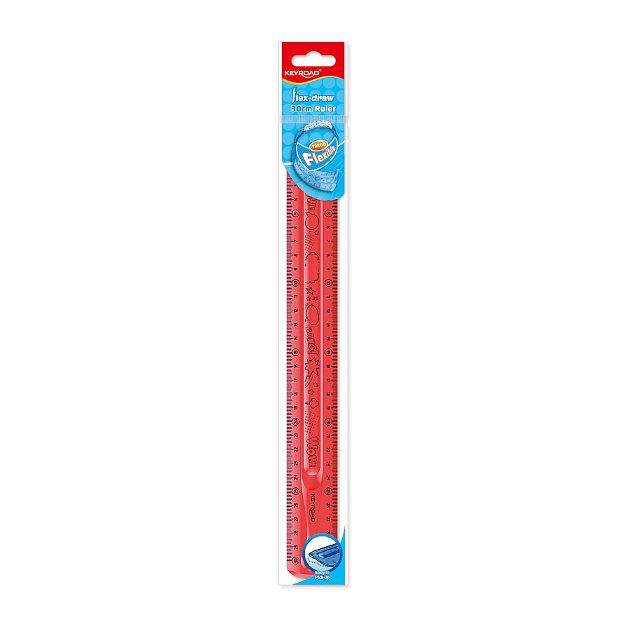 Riglă KEYROAD Flexi de 30 cm, flexibilă, cu rezistență mecanică ridicată și design transparent atrăgător. Ideală pentru școală și birou, în plus fără ftalați și în culoare roșie.