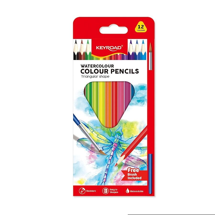 Descoperiți posibilitățile creative cu creioanele acuarelă KEYROAD în format triunghiular practic. Setul de 12 creioane din lemn, lăcuite, cu diametrul minei de 3 mm se estompează ușor cu apă și creează treceri fine de culoare. Pachetul include o pensulă, iar pe fiecare creion există un loc pentru nume. Solubile în apă, rezistente la rupere, ușor de ascuțit și cu formă ergonomică triunghiulară pentru o prindere confortabilă.