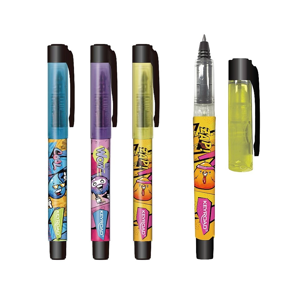 Roller stilat reîncărcabil, cu motive atrăgătoare pentru copii și studenți, oferă scriere lină și precisă datorită vârfului de 0,7 mm. Este potrivit pentru dreptaci și stângaci și în pachet se află o cartușă de cerneală pentru utilizare imediată. Ambalajul tip display conține culori și modele asortate, care înveselesc orice scriere școlară sau de acasă.