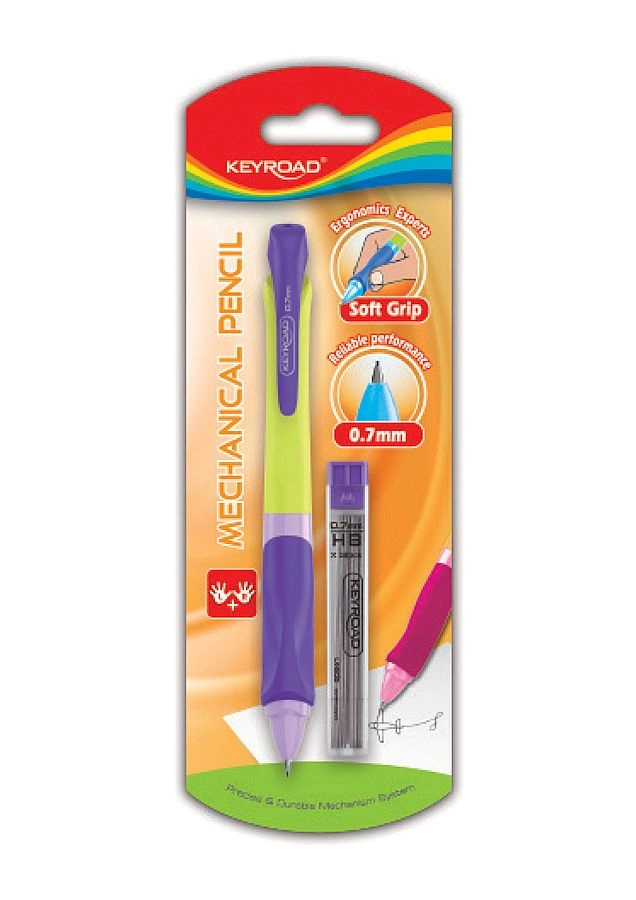 Creion mecanic stilat cu priză moale pentru scriere confortabilă, mecanism fiabil și vârf de 0,7 mm. În pachet găsești și toc cu mine de rezervă. Potrivit pentru dreptaci și stângaci, livrat în culoare mov.