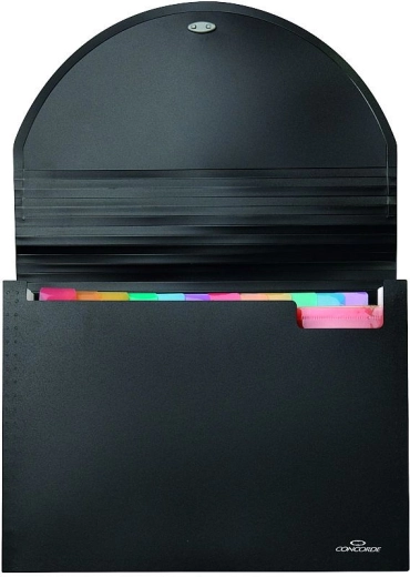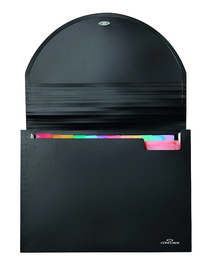 Organizator elegant pentru documente în format A4, cu 25 de buzunare, index practic și etichete de identificare pentru o orientare ușoară. Construcția durabilă din polipropilenă, de culoare neagră, cu închidere cu bandă elastică păstrează documentele în siguranță acasă, la birou și în deplasare.