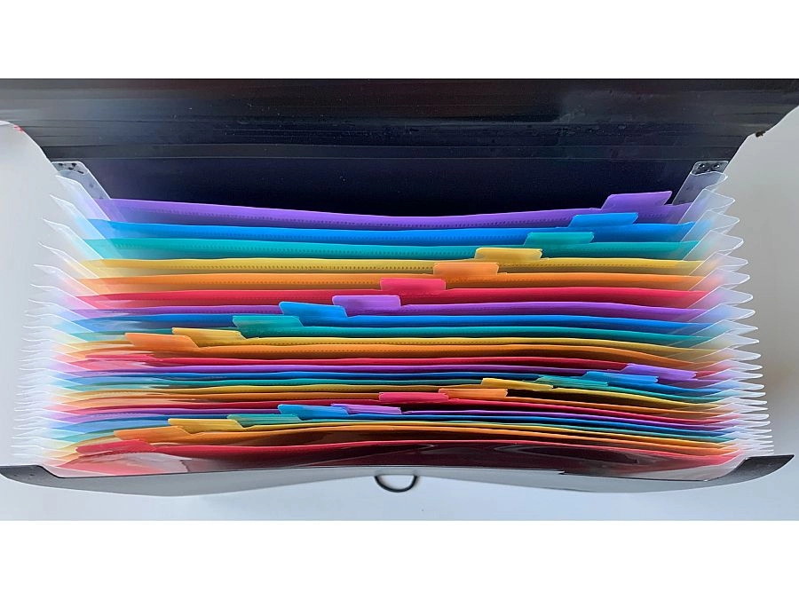 - Organizare clară: 25 de buzunare cu index și etichete.