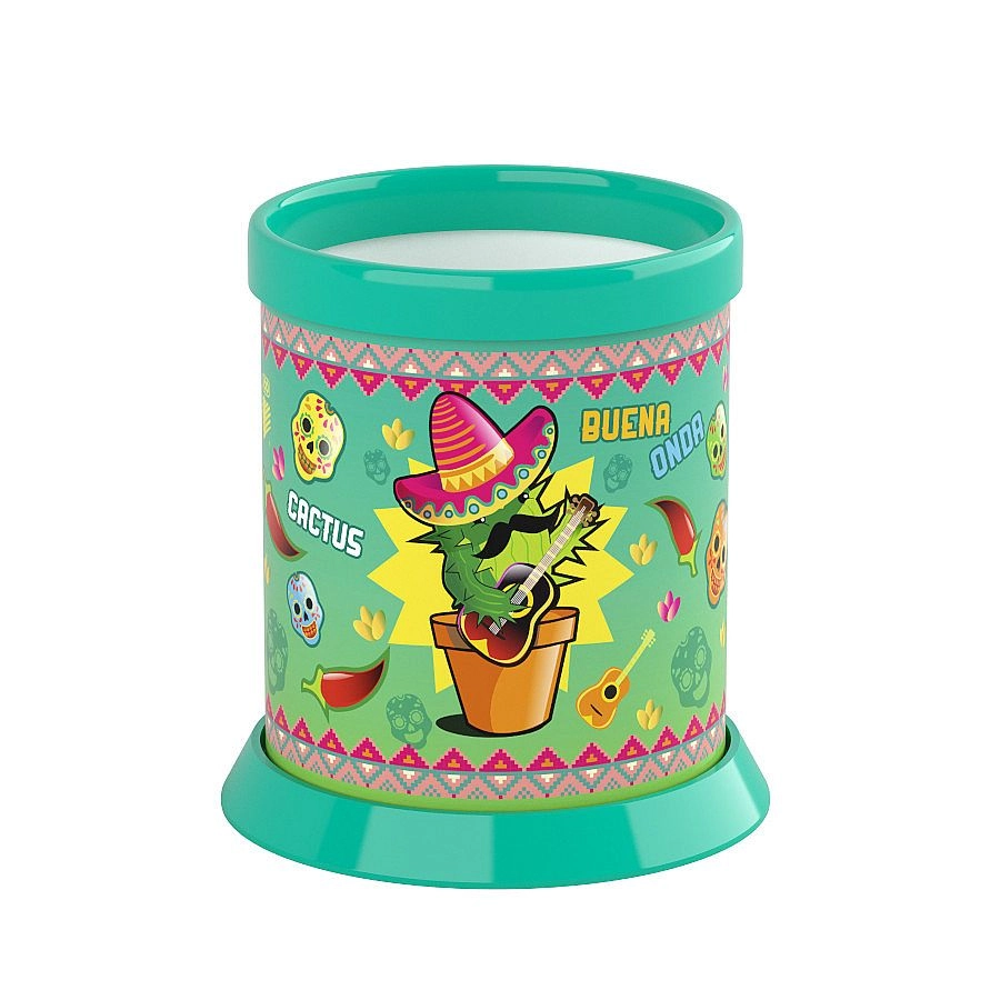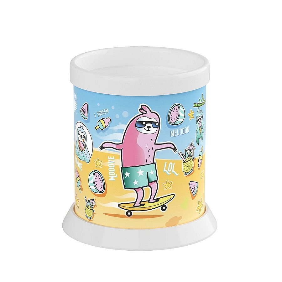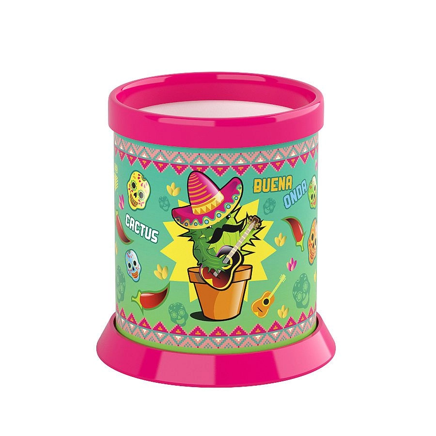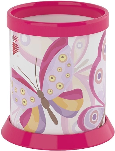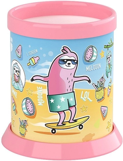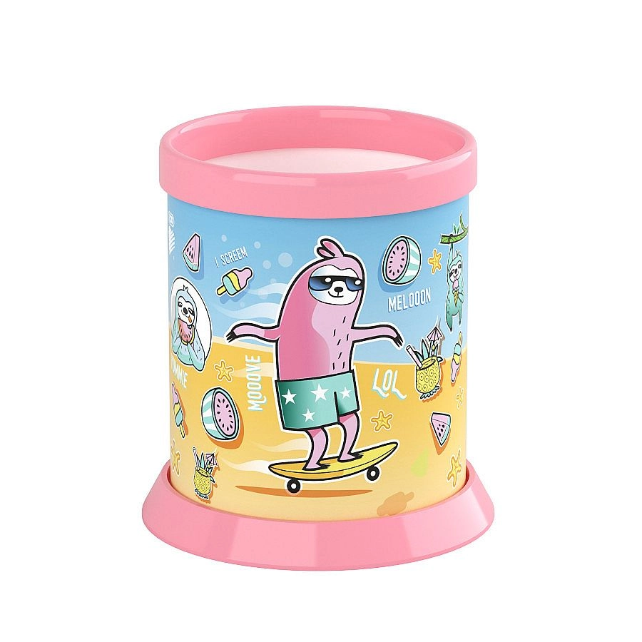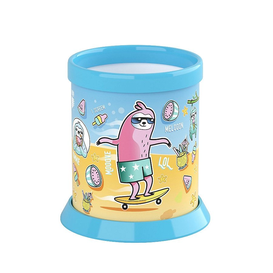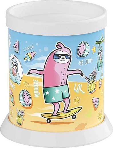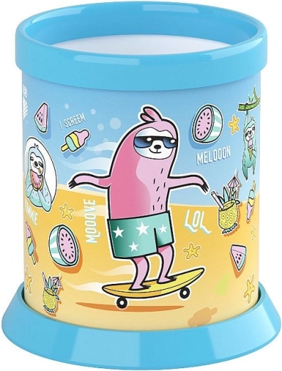 Suportul are dimensiuni compacte (Ø 70 mm, înălțime 95 mm), astfel încât încape pe orice birou, raft sau în camera copilului. Suprafața netedă se curăță și se întreține ușor, fiind ideală pentru utilizarea zilnică la birou și acasă. Motivele colorate pot varia în funcție de livrarea actuală.
