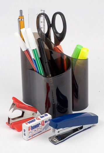 Organizați-vă biroul cu suportul practic ICO Lux. Varianta negru transparent are un aspect modern și, în același timp, oferă o vizibilitate mai bună a obiectelor depozitate. Trei sectoare separate vă ajută să delimitați ușor creioane, markere, foarfece sau rigle.