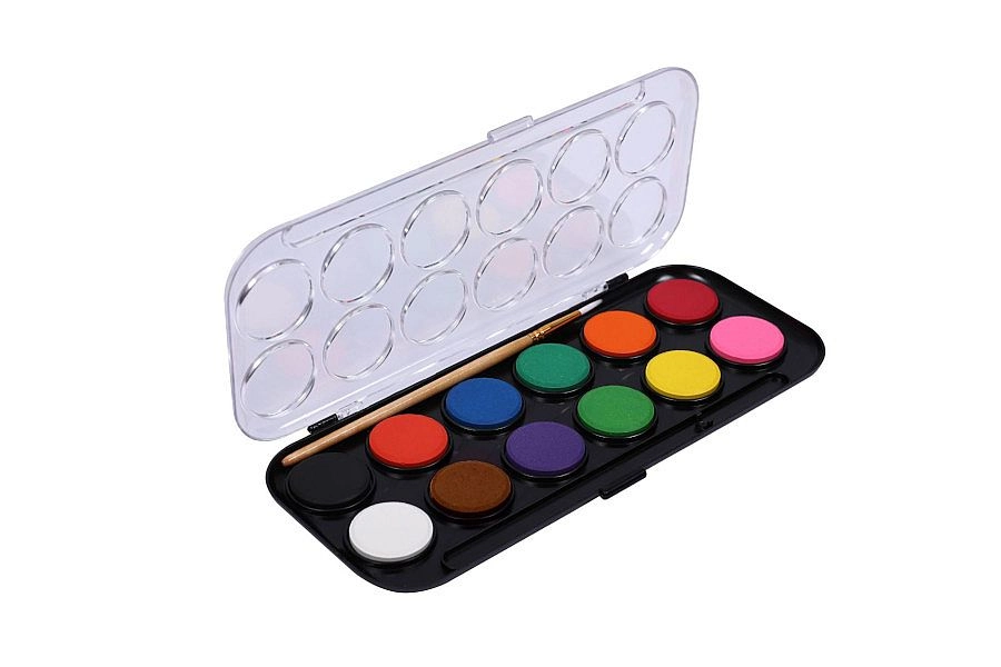 Descoperiți acuarele fiabile pentru școală și creații acasă. Setul CONCORDE conține 12 nuanțe atent alese într-un ambalaj practic, care protejează culorile și permite o vizualizare rapidă datorită capacului transparent. Diametrul mare de 30 mm ușurează lucrul atât pentru copii, cât și pentru începători.
