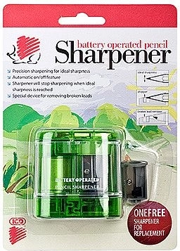 Ascuțitoare electrică compactă și fiabilă ICO Mini pe baterii, pentru creioane și creioane colorate standard cu diametrul de 8 mm. Oferă ascuțire rapidă și curată fără efort, ideală pentru școală, birou și acasă. Pachetul include o lamă de rezervă pentru o durată de viață mai lungă. Dispozitivul nu poate fi alimentat cu adaptor.