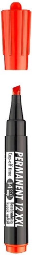 Markerul permanent ICO 12XXL, culoare roșie, este conceput pentru utilizare universală pe majoritatea suprafețelor netede. Datorită vârfului teșit, puteți realiza cu ușurință o linie fină pentru notare sau o trăsătură mai groasă pentru evidențiere, în intervalul 1–4 mm. Formula specială cu cu 50% mai mult cerneală asigură o durată de viață lungă și un scris intens, constant.