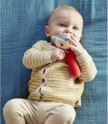Zornăitoare drăgălașă cu pârâitor în formă de vulpiță de la Petit Collage, care bucură cei mai mici și susține dezvoltarea lor. Este moale, ușor de prins și realizată din bumbac organic certificat GOTS. Dezvoltă motricitatea fină, distrează atât acasă, cât și în deplasare și este sigură datorită vopselelor pe bază de plante.