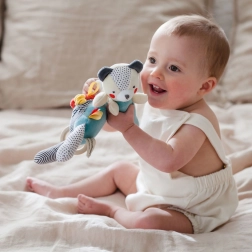 Modele contrastante, texturi variate și detalii fine susțin dezvoltarea văzului, a simțului tactil și a motricității fine încă de la 0+.