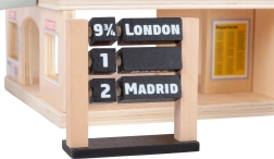 Descoperiți o gară realistă care sprijină imaginația, jocul de rol și motricitatea fină. Construcția robustă din lemn certificat FSC și detaliile bine gândite, precum automatul de bilete, panoul de plecări și magazinul, asigură ore întregi de distracție. Acoperișul deschis oferă acces la toate zonele de joc și ușurează joaca simultană a mai multor copii.