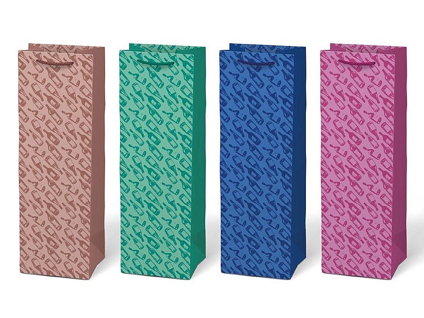 Această pungă din hârtie pentru sticlă ridică la nivel superior orice cadou. Mixul atemporal de motive se potrivește pentru zile de naștere, nunți și evenimente corporate, iar datorită execuției atente transportă în siguranță o sticlă de vin sau altă băutură.