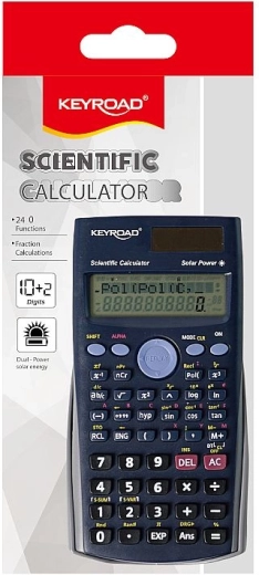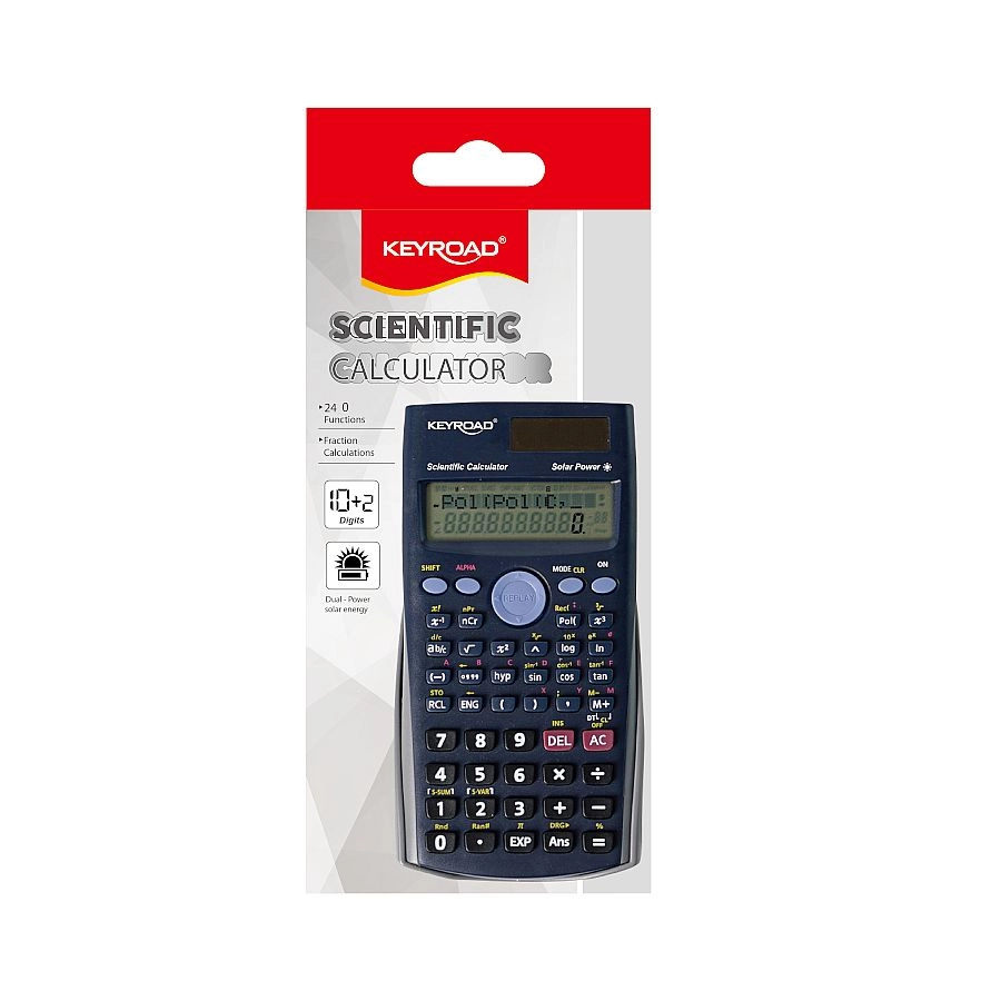 Calculatorul științific Keyroad îmbină o dotare funcțională amplă cu un design robust. Datorită alimentării duale, funcționează fiabil în orice condiții de lumină și economisește bateria la lumina zilei. Ecranul cu 10 cifre asigură o afișare clară și precisă a rezultatelor, inclusiv două zecimale.