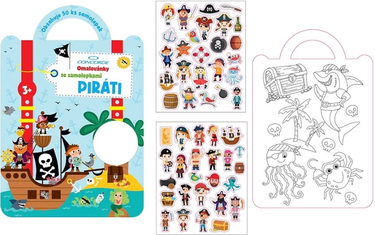 Cărți de colorat distractive cu autocolante cu tematică de pirați îi vor încânta pe toți micii creatori. Conțin 20 de imagini pentru colorat și 50 de autocolante, care susțin imaginația și creativitatea. Datorită mânerului practic pentru transport sunt ideale și pentru călătorii.