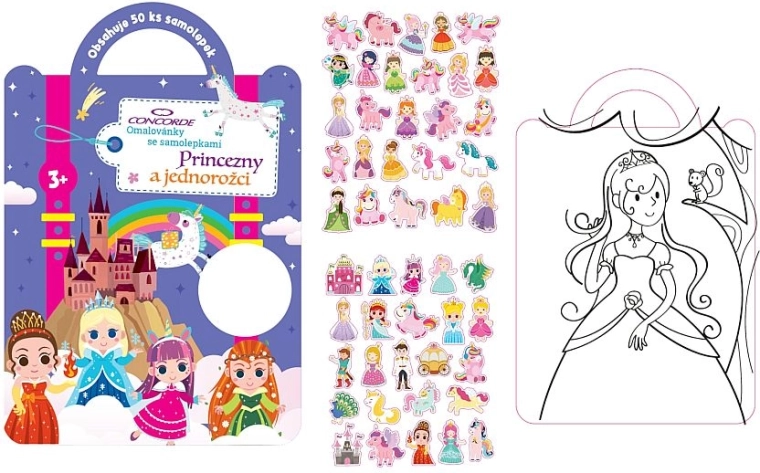Set magic pentru micii creatori: caiete de colorat cu motive de prințese și unicorni, completate de 50 de autocolante și 20 de imagini de colorat. Copiii se vor bucura de creație și joacă, își dezvoltă imaginația și creativitatea și, datorită mânerului practic, le pot lua ușor în călătorii.