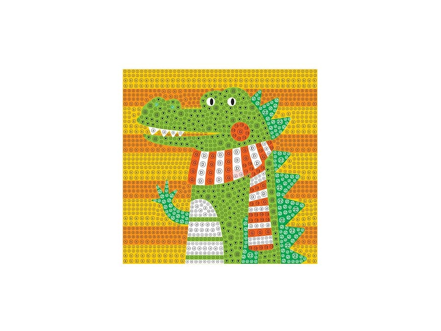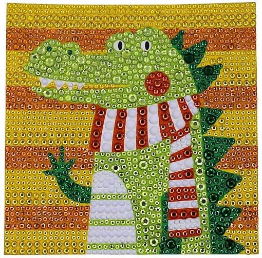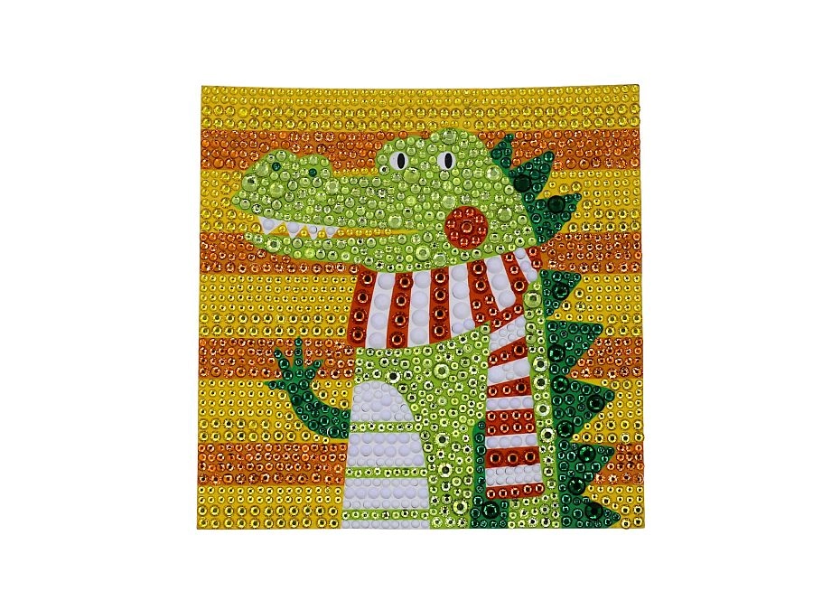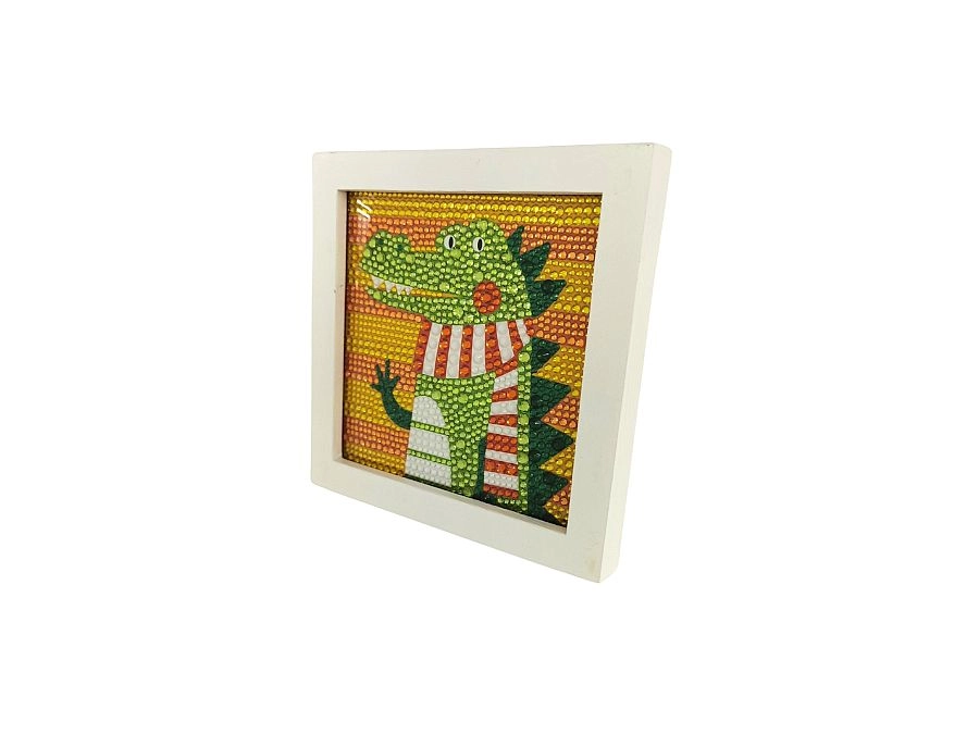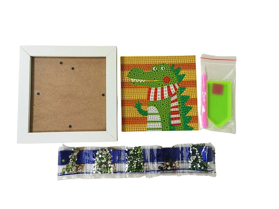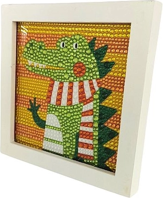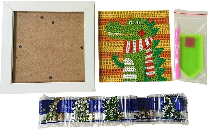 Acest set creativ de pictură cu diamante cu motiv de crocodil îi va încânta atât pe copii, cât și pe adulți. Datorită șablonului color și aplicării simple a diamantelor cu ajutorul stiloului și al gelului din silicon, oricine poate realiza o imagine frumoasă și sclipitoare. Lucrarea finală poate fi expusă cu mândrie în rama albă inclusă.