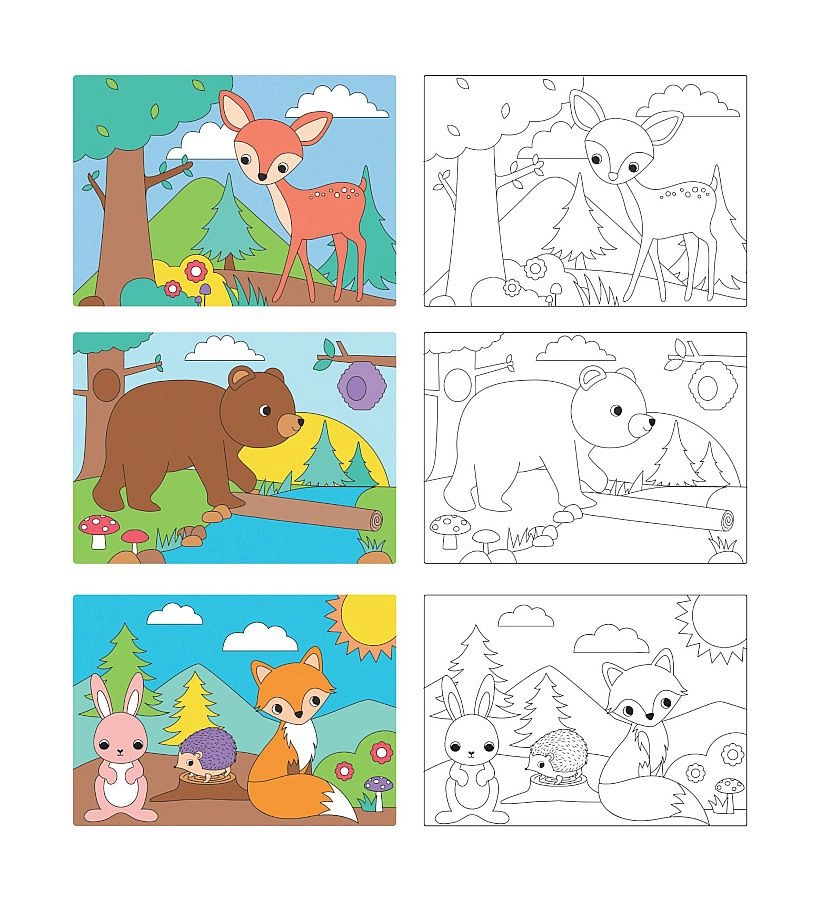 - Totul într-un singur set – 3 pânze, 6 culori și pensulă pentru creație imediată.