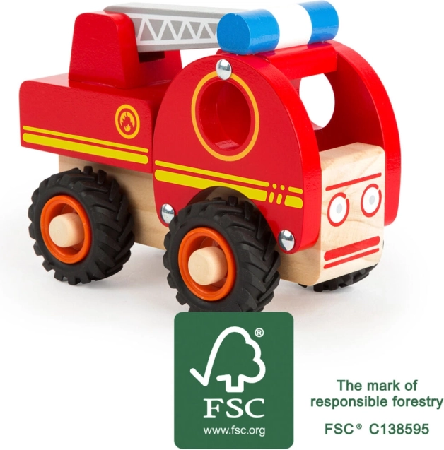 Porniți în misiuni eroice de salvare cu această frumos lucrată mașină de pompieri fabricată din lemn 100% FSC. Designul nu este doar realist, dar și sigur pentru mâinile mici datorită materialului solid și marginilor rotunjite. Jucăria oferă suficient spațiu pentru figurine și o scară mobilă pentru a extinde opțiunile de joc.