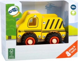 Acest vehicul de construcții compact, din lemn certificat FSC, îi va încânta pe toți micii constructori. Datorită roților cauciucate, se deplasează silențios și sigur pe diverse suprafețe și este sigur pentru camera copilului. Combinația naturală dintre lemn și galbenul intens stimulează jocul curios și dezvoltarea abilităților.