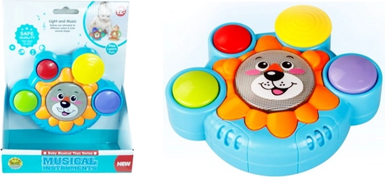 Sprijiniți curiozitatea naturală și talentul muzical al copilului dvs. cu vesela tobă cu leu. La apăsarea butoanelor colorate se activează efecte luminoase și sunete, care motivează jocul și explorarea. Datorită controlului simplu, jucăria este potrivită încă de la 12 luni.