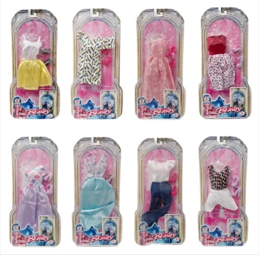 Set stilat pentru păpuși, care include hăinuțe cu botoșei în diverse culori și modele. O alegere excelentă pentru joacă creativă a copiilor de la 3 ani. Fiecare set este livrat pe un suport din carton cu capac transparent. Selecție aleatorie de culori și designuri. Prețul este pentru 1 bucată.