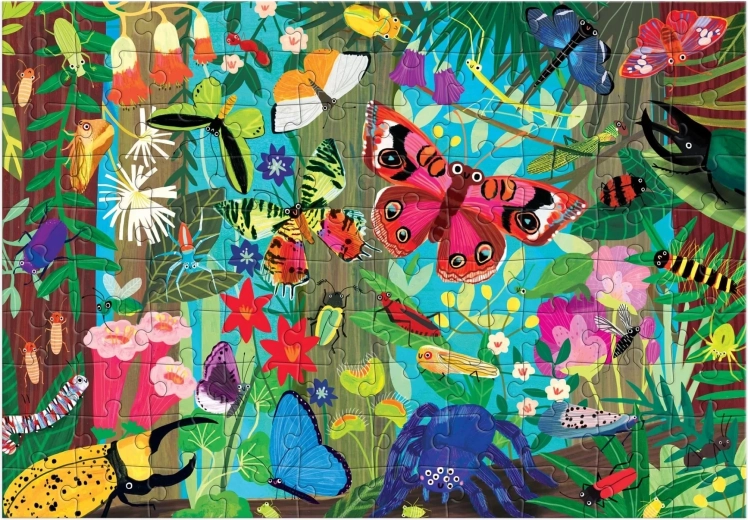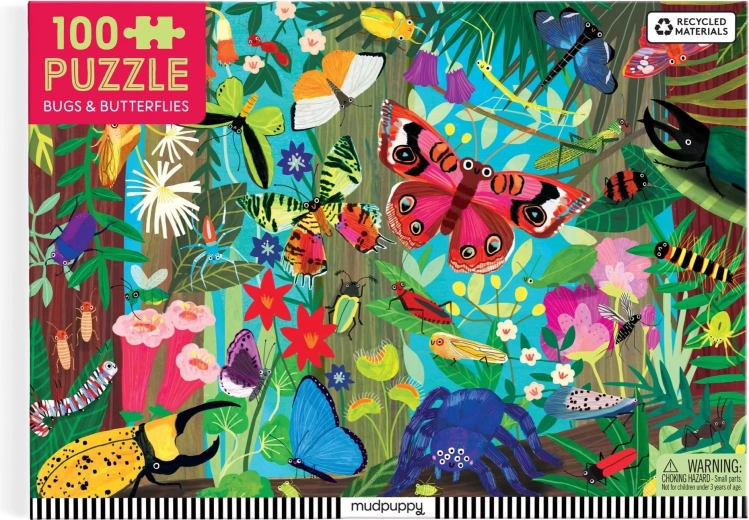 Scufundă-te în lumea colorată a naturii și descoperă împreună cu cei mici frumusețea fluturilor și a altor insecte. Acest puzzle Mudpuppy de 100 de piese oferă o ilustrație colorată și educativă, care îi va încânta pe micii exploratori și îi va ghida discret în recunoașterea formelor, modelelor și detaliilor. Cutia servește drept depozitare practică și sigură a pieselor și afișează imaginea finală pentru o asamblare mai ușoară.