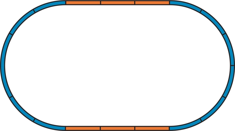 Ovalul de bază, cu raza minimă de 358 mm, se potrivește în spații mai mici și poate fi oricând extins cu macazuri și elemente suplimentare.