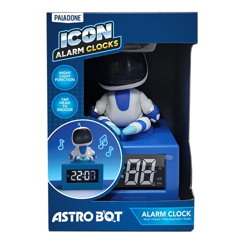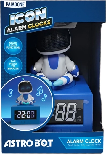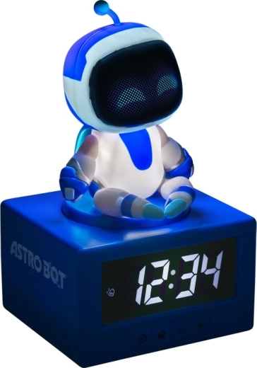 Ceasul deșteptător Astrobot îmbină aspectul jucăuș, robotic, cu practicitatea de zi cu zi. Finisajul alb‑albastru, cu detalii albastre și „fața” prietenoasă de pe ecran, conferă un plus de stil noptierei sau biroului. Afișajul digital frontal cu cifre albe asigură o lizibilitate excelentă a orei, atât ziua, cât și noaptea.