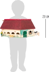 Această fermă din lemn este concepută pentru a sprijini imaginația copiilor. Cu detalii precum acoperișuri care se deschid și uși glisante, copiii pot recrea diferite scenarii fermierești.