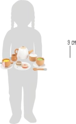 Acest set de ceai pentru copii frumos realizat le permite micilor gazde și gazduițe să-și servească oaspeții cu cănițe drăguțe, ceainic și alte accesorii. Calitatea înaltă a lemnului masiv asigură robustețea și durabilitatea jucăriilor, care sunt proiectate special pentru mâini mici de copii.